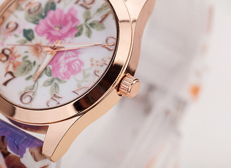 2016 HOT! Fashion Women Watches Reloj Rose Flower Print Silicone Floral Jelly Dress Watches Lady Girls Drop Shiping Wholesale