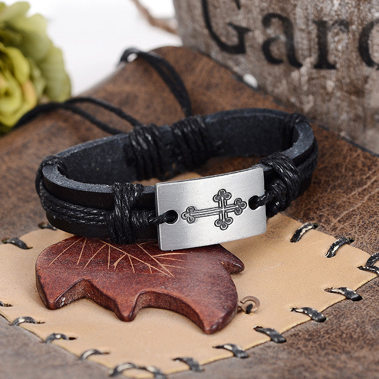 Braid Genuine Leather bracelet Wrap Charm Cross Bracelets Bangles Men Jewelry.....