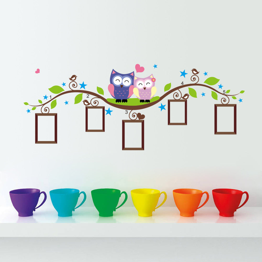 owls photo frame wall stickers home decoration bedroom animals wall decals mural art living room cartoon flower vine......