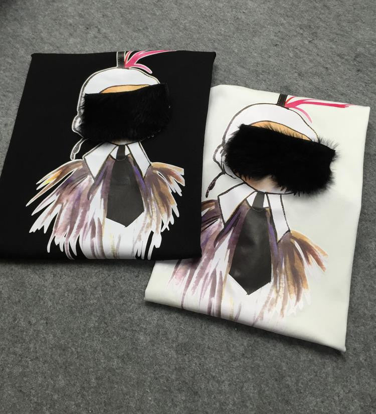 cartoon print applique short sleeve cotton slim T-shirt