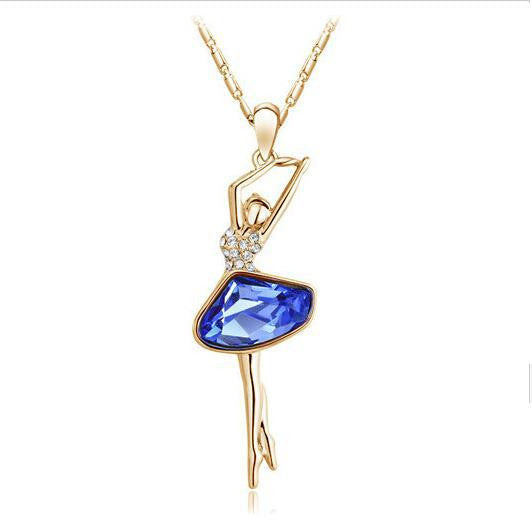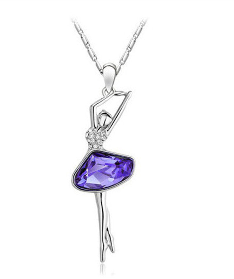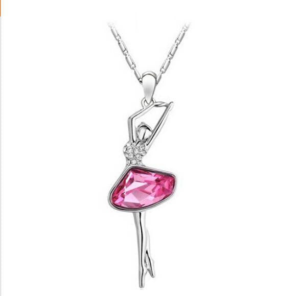 Hot Selling Silver Plated Austria Big Crystal Element Ballet Dance Girls Pendant Necklace for women.......