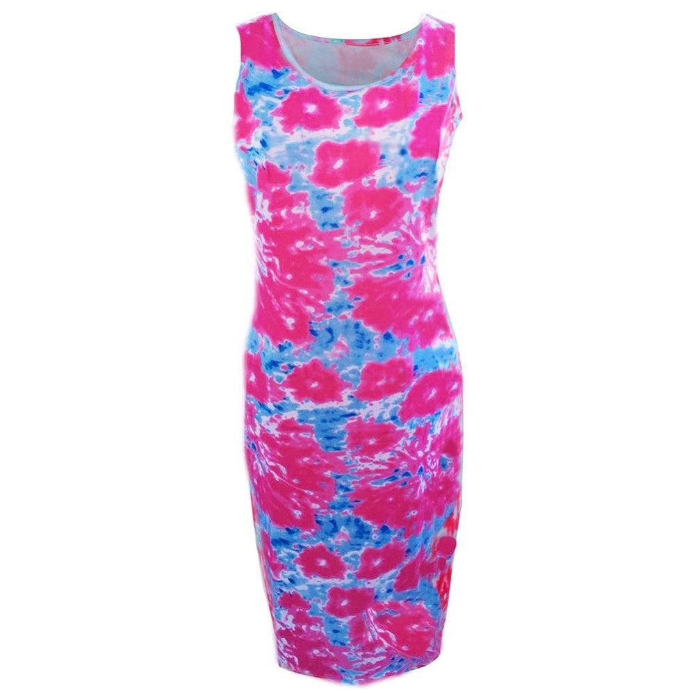 Mulheres verão rosa Dingtoll gostavam Bodycon vestido vestido sem mangas Vestidos