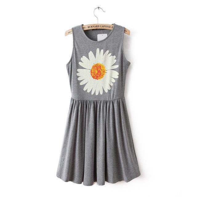 Women Summer Dress Fashion Design Elastic Waist Sun Flower Print Dresses Women Clothing Active Casual Dress Plus Size