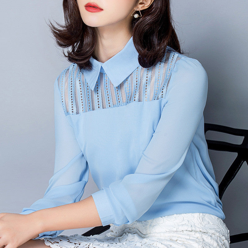 Solid Chiffon Shirts Autumn Spring Women Formal Shirt Blue White Black Plus.